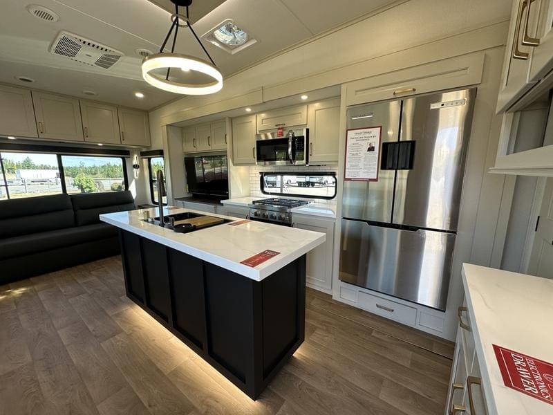 RESIDENTIAL LIVING PKGROLLER SHADESSOLID STEP QUAD ENTRY STEPSKEYED A LIKESTEALTH AC SYSTEMPEACE OF MIND PKGWEATHER-TEK PKGMAX BUILT CONSTRUCTION PKGELECTRIC FIREPLACE12V TANK HEATERSUPGRADED H RATED TIRE W/17.5″ WHEELS2ND A/C 15K BTU16 CU FT 2 DOOR, 12V REFRIGERATOR(INVERTER PREP,330W SOLAR PANEL50 AMP CONTROLLERBLUETOOTH MODULE AND TWO (2)DOCK PORTSOMNICONNECT SATELITE,CELLULAR AND WIFI INTERNET PREPSRARVIA SEAL2ND PATIO AWNING6-POINT AUTO LEVELING SYSTEMKING BED UPGRADEHEAT PUMP A/CSLIDE OUT AWNING (3 SLIDE)7K AXLE W/ABS BRAKESCSA CERTIFICATIONDPU